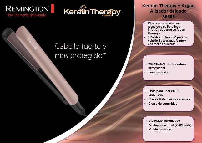 Keratin Therapy + Argán Alisador delgado S8599, Remington